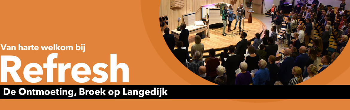 REFRESH is een initiatief uit de regio van Broek op Langedijk en probeert op een enthousiaste manier een ieder (opnieuw) bij het geloof te betrekken. Zo is REFRESH voor ieder een toegankelijk, ongeacht religieuze voorkeur of achtergrond. Het is geen officiële kerkdienst maar een korte samenkomst waarin iedereen zichzelf moet kunnen zijn.